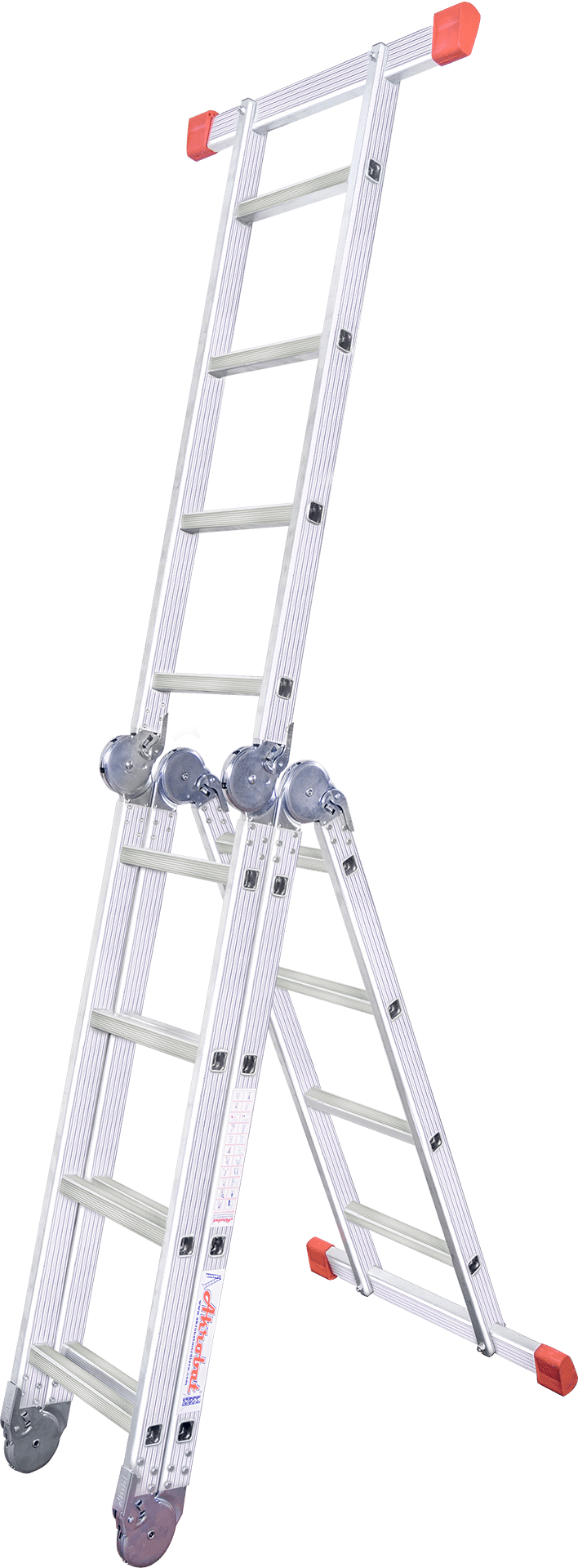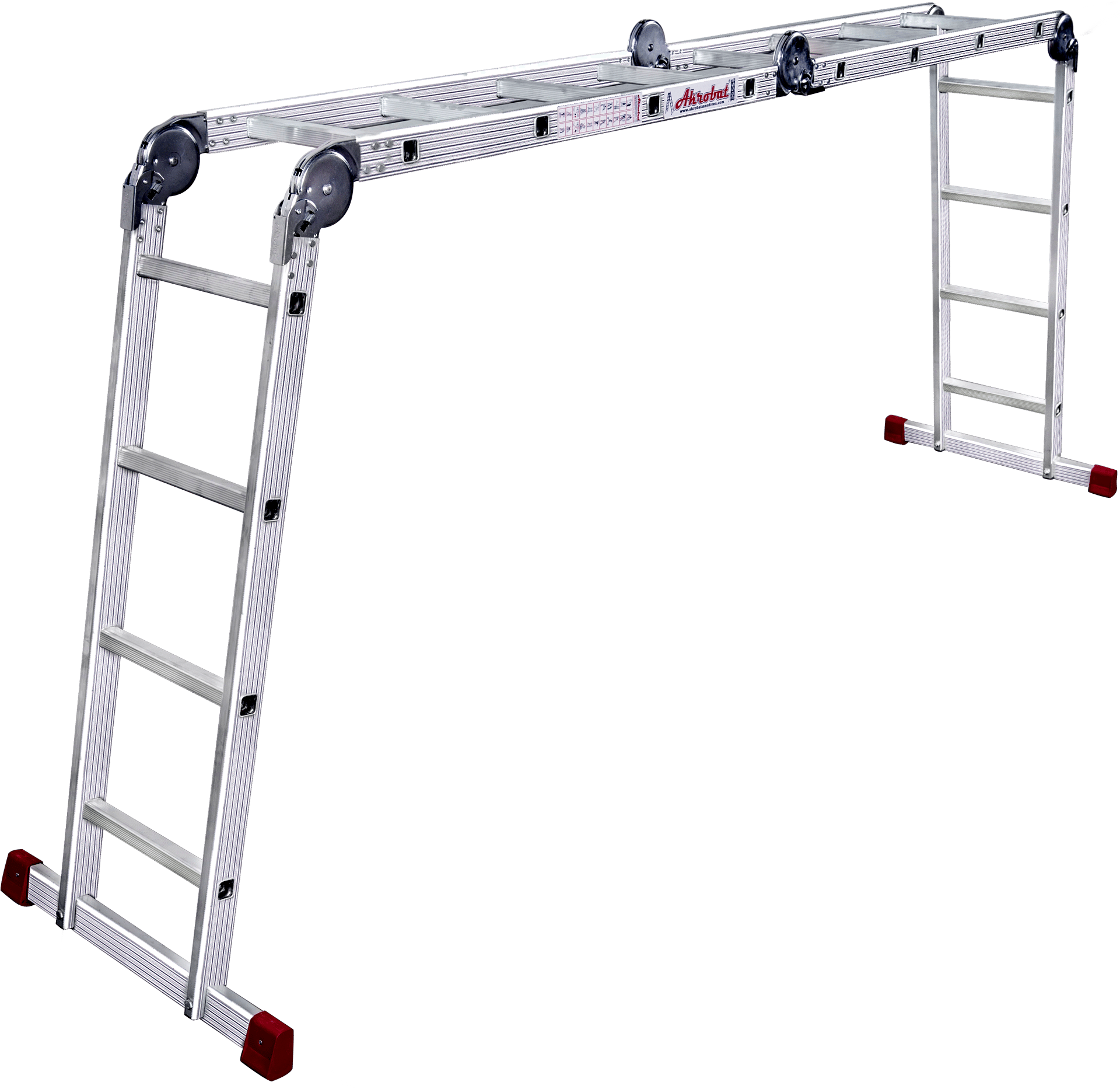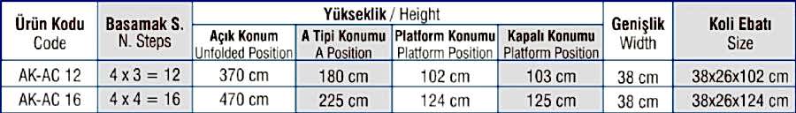 A tipi konumunda herhangi bir yere dayamaya gerek duyulmadan kullanabilindikleri gibi, tek parça dayamalı olarak da Akrobat Merdivenleri kullanabilirsiniz. Aynı zamanda kolaylıkla platform şekline de gelebilirler.